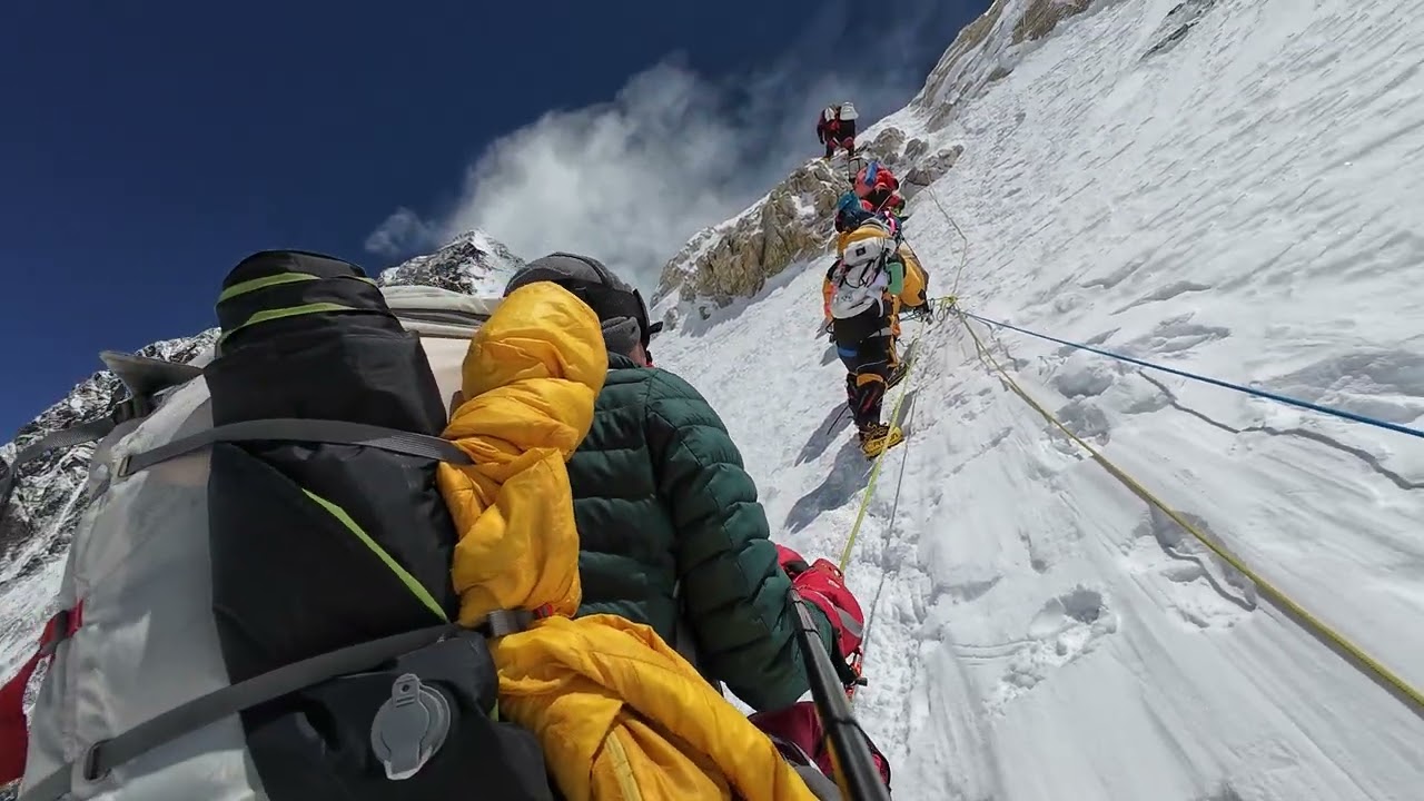The 1 and only video I took heading back down the mountain. I was the 4th western climber to summit in 2024, there were a lot of people coming up behind me that day