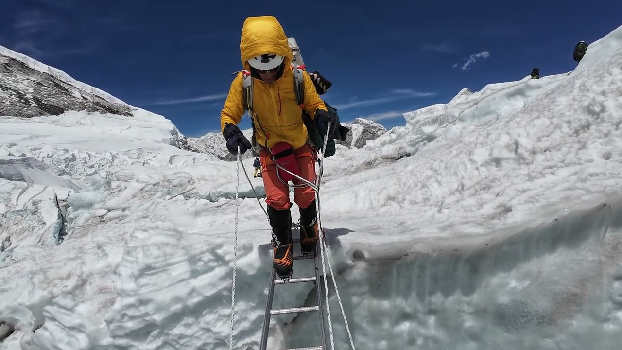 The darkness turns to light at about 5am. Now I’m really scared! I am deep into the ice falls and can see how precarious the risks are all around me. I was told most people get through the icefalls in 5 hours, but I had just come from New York and I am not ready for the altitude at 19,000ft. I am moving so slow, it’s very hard!